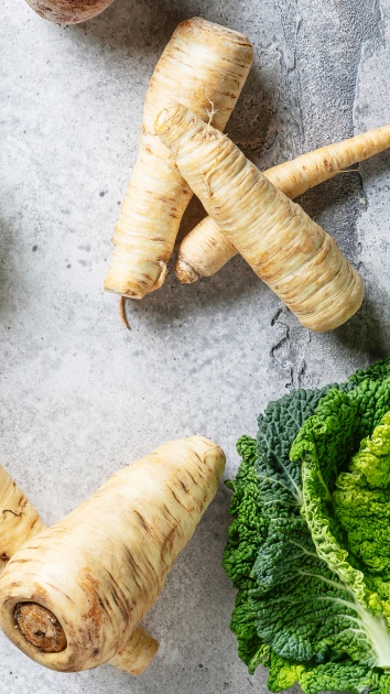 L’abbinamento di cavoli e ortaggi da radice gioca su componenti aromatiche condivise come terpeni, aromi terrosi e sostanze amare. La nota dolciastra degli ortaggi da radice si sposa alla perfezione al gusto amarognolo dei cavoli.